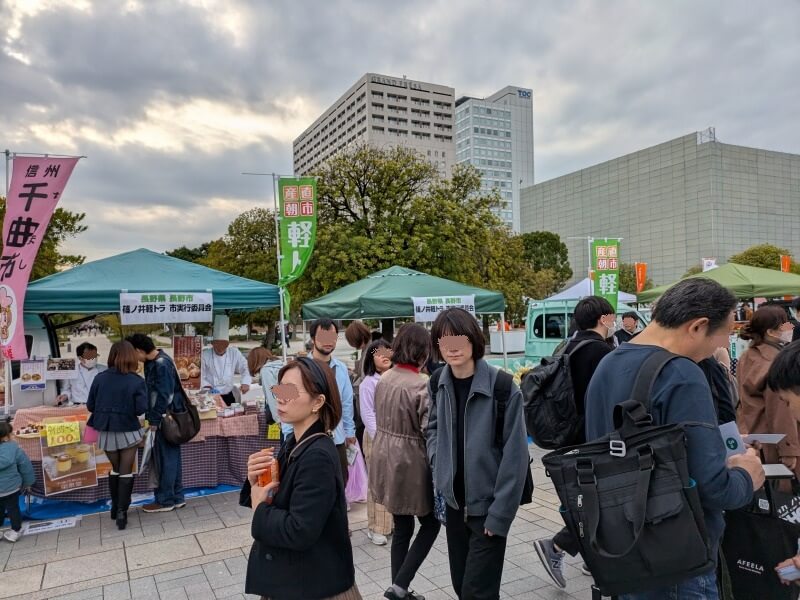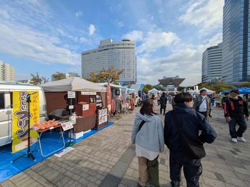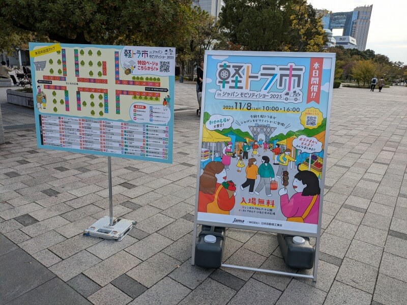 国際展示場駅から会場のビックサイトまでの道では「軽トラ市」が開催されていました。日本全国各地の名産品を販売する軽トラやキッチンカーが並んでいました。