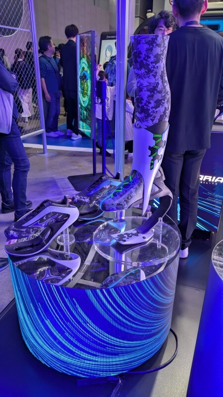 競技用義足の板バネ研究開発で培ったカーボン技術を採用した、ミズノの炭素繊維強化プラスチック(CFRP)板バネフットギアコンセプトモデル「MOBILARIA β(モビラリア ベータ)」