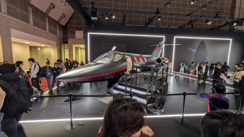 ホンダブースにはなんとホンダジェットが。小型機とはいえ、会場に飛行機を展示とはすごい!