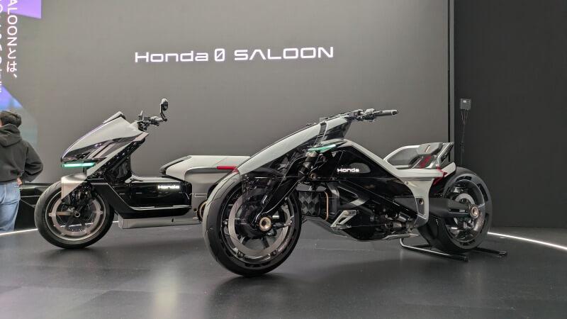 電動バイク3種。真ん中の PROTO HEVはエンジンとモーターのパラレルハイブリッド。モーターで発進し、エンジンで加速し、さらにもう一つのモーターで加速を上乗せする・・・らしい。なんかすごい。