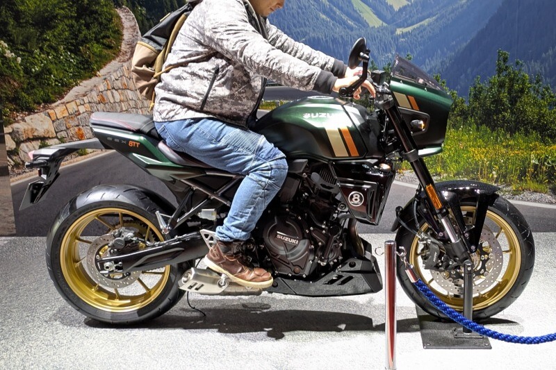 こちらは 「GSX-8TT」ビキニカウルとバーエンドミラーって相性イイですね。カラーリングは(個人的な好みで言うと)単色の方がいいな、って思いました。