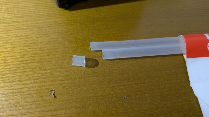 近くのホームセンターでは各種チューブを10cmから切り売りしてくれます。今回は薄くてやわらかいシリコンチューブを選びました。