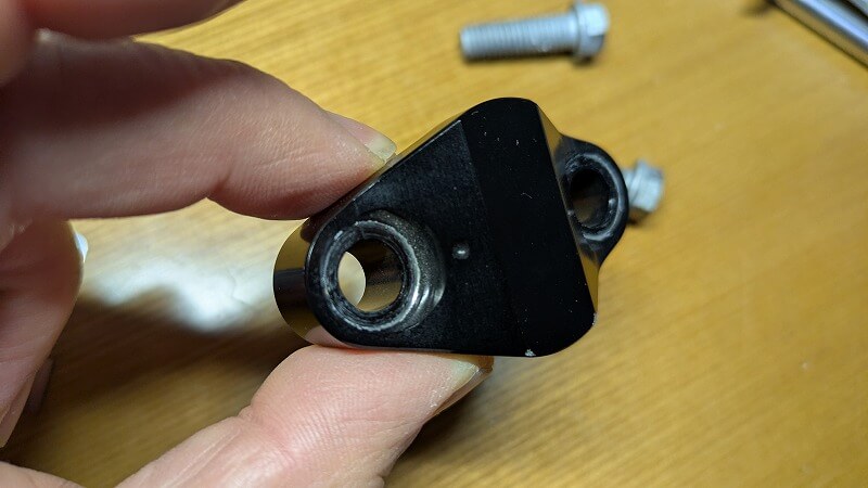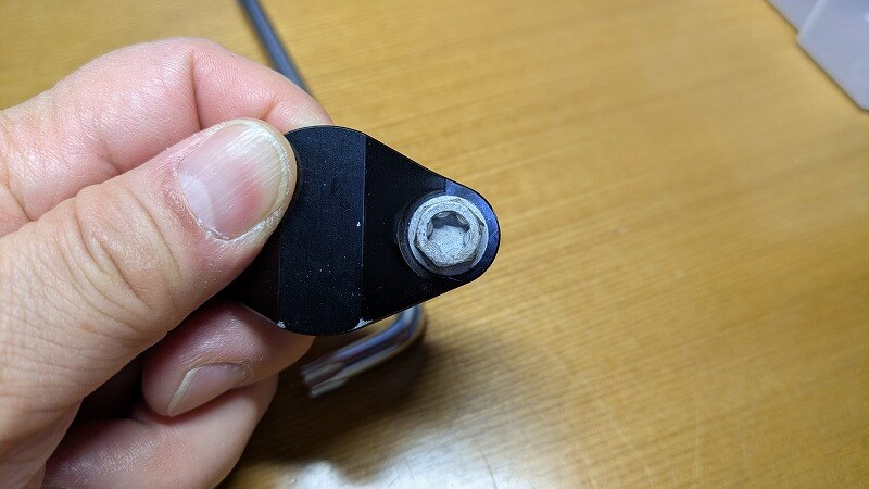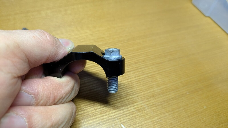 ボルトの頭が収まる部分はクランプが削られています。あまり隙間は大きくないので、六角ソケットレンチで回すのは難しいと思います。なのでヘックスネジ(もしくはトルクスねじ)じゃないとダメです。