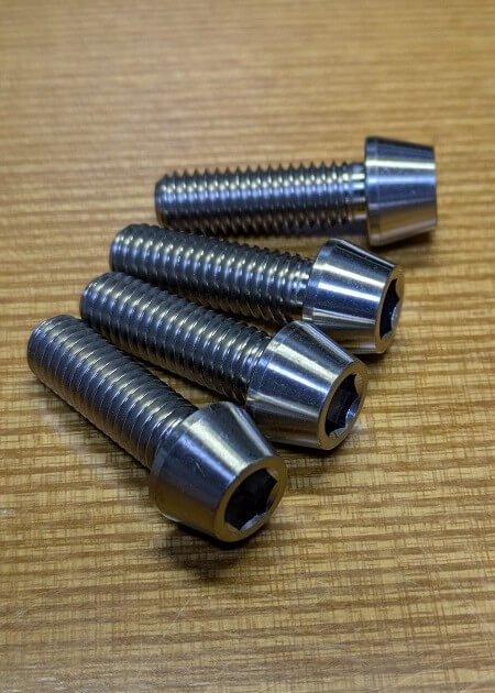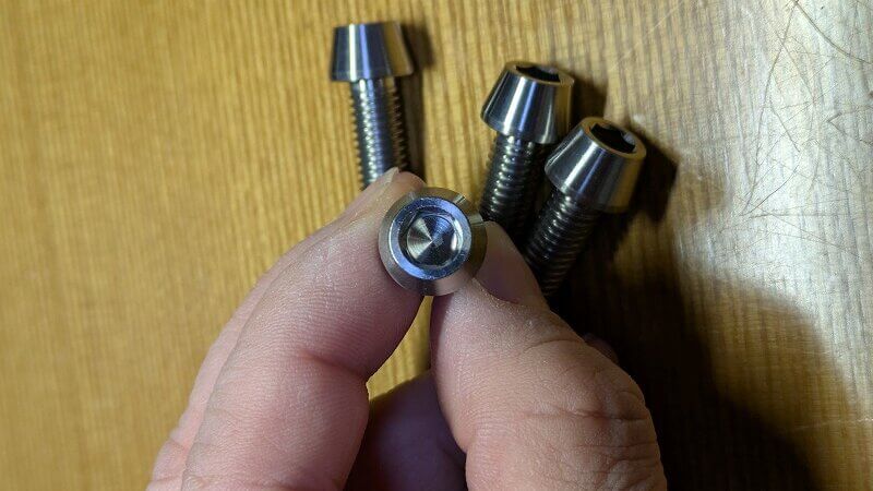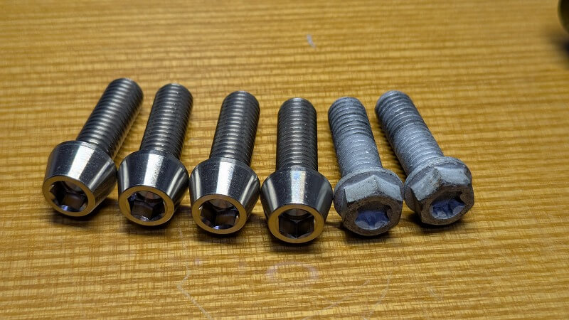 そこで、今回はチタン(チタン合金)ボルトを使います。軽く、錆びず、強度が高いボルトです。(値段も高いですが)。