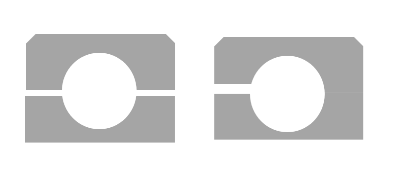 左側のクランプは前後を均等に締め付けるタイプ。右側は前後でクランプの厚みが違っていて、まず前側のボルトを締めてから、後ろ側のボルトを締めるタイプです。