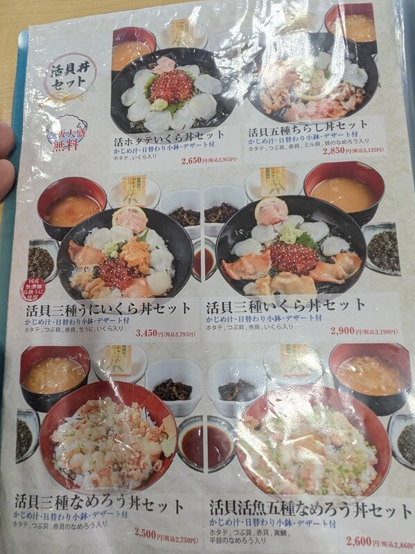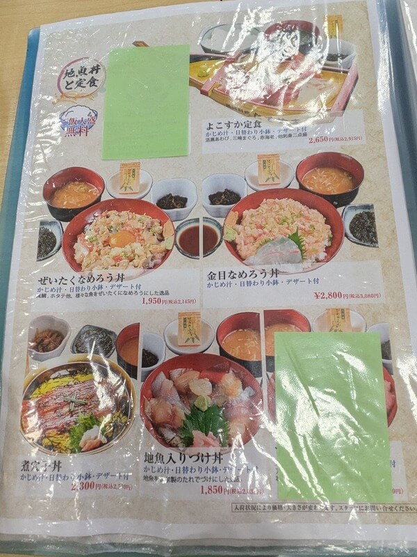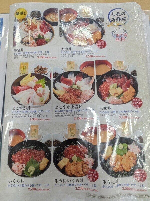 やはり一番人気は海鮮丼のようです。どれもおいしそう!ただちょっとお高めですね。