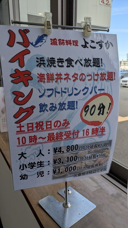 バイキングは90分で大人4800円。どんなメニューなのか見てみたかったなあ。