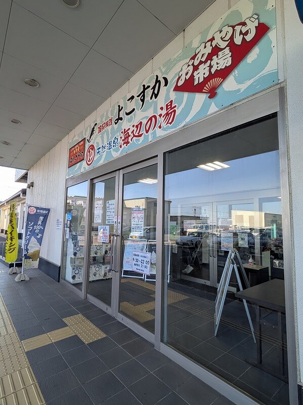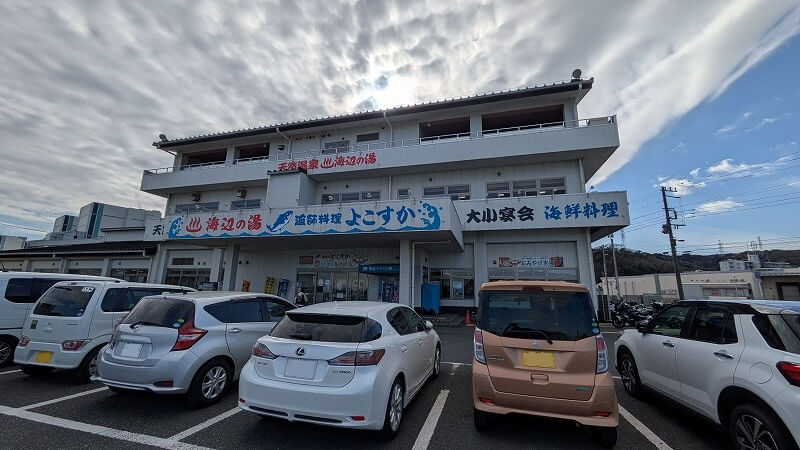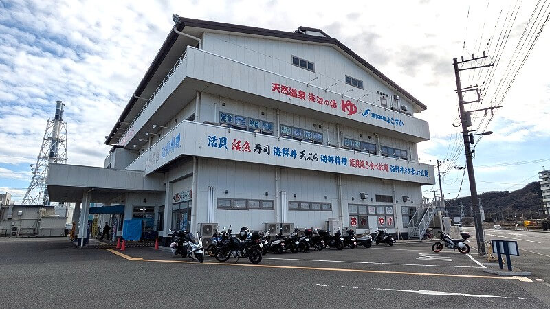 大型のドライブインといった感じの店で、二階は「海辺の湯」という温泉施設になっています。駐車場は広く、バイクも沢山とまっていました。