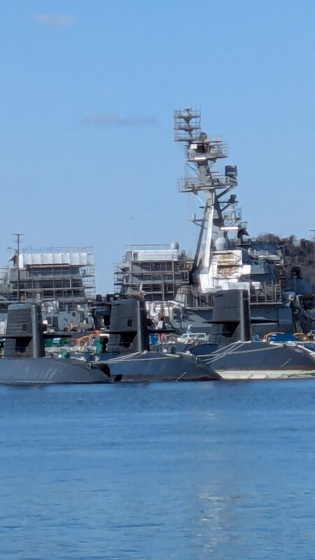 店内からは、港内に停泊している自衛隊や米軍などの戦艦がみられます。