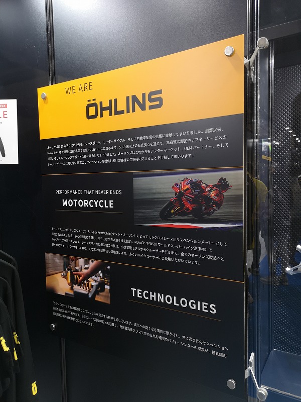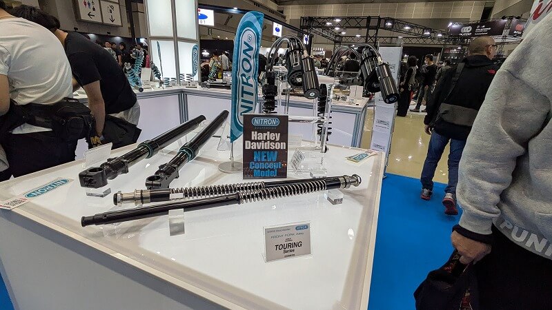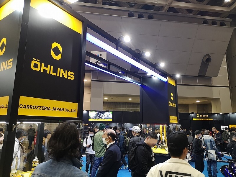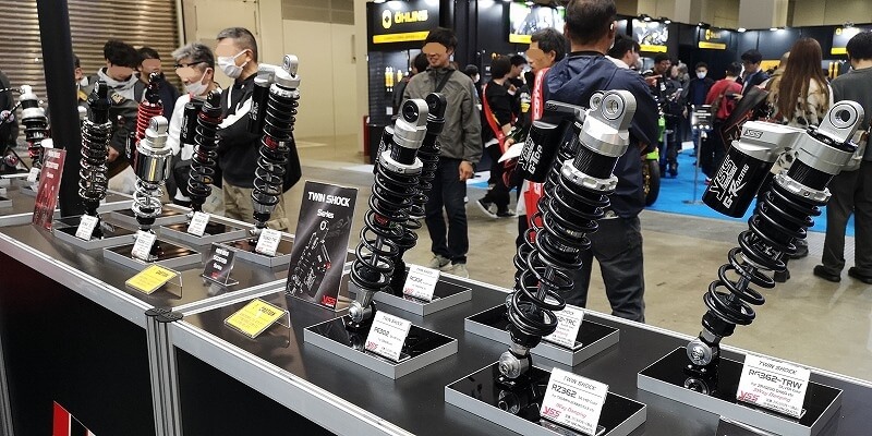 オーリンズのブース。XL1200CXに付けた一国オリジナルのオーリンズ、あれは良かったなあ。