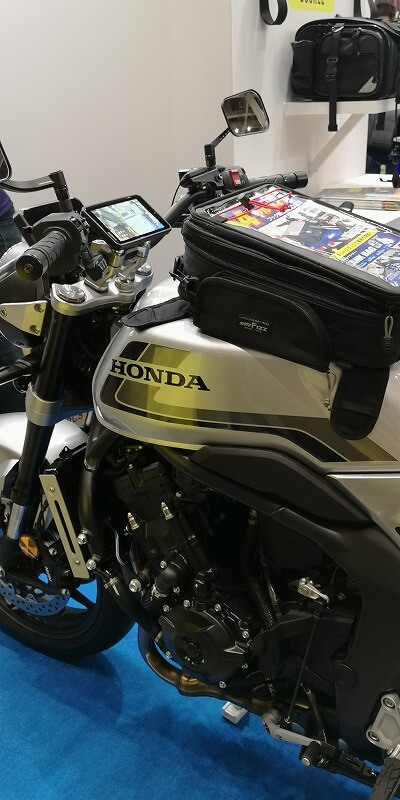 どこのブースへ行ってもCB1000Fだらけ。タナックスさんでも対応商品のアピールに力が入ってます。