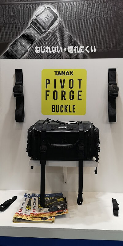 最新のタナックスのシートバッグはねじれなくて壊れにくい新型のバックルを採用してるんだそうです。