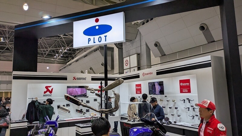 愛知のバイクパーツメーカーであり、バイク用品、パーツのディストリビューターでもある PLOTのブース。
