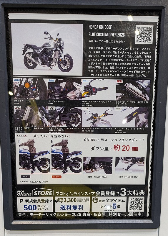 ここで紹介されていたのはCB1000F用のローダウンキット。ダウン量、およそ20mm。
